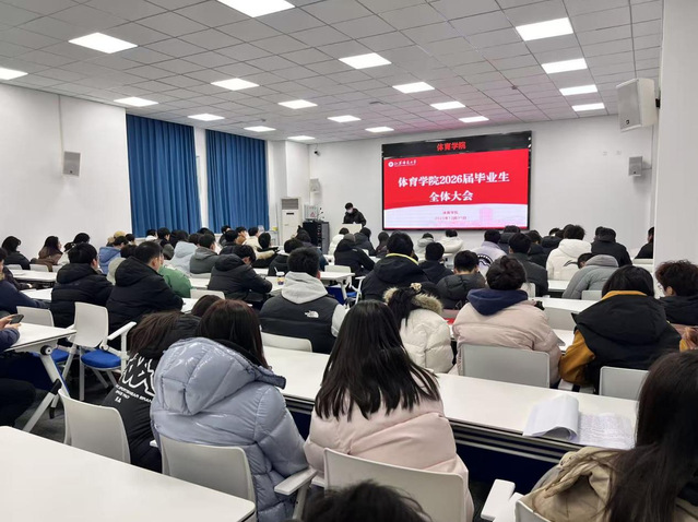 为切实推进2026届毕业生就业工作,引导毕业生明晰发展方向,12月31日学院在游泳馆多媒体一教室组织召开2026届毕业生就业促进会。学院党委副书记朱悦、就业辅导员王广嘉出席会议,2026届全体毕业生参会。